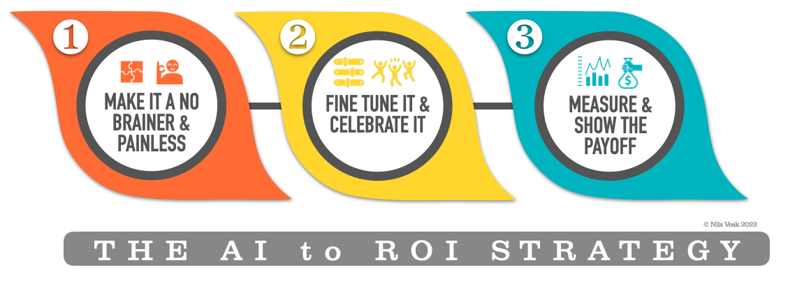 Then borrow what I did to successfully implement your own AI to ROI strategy.