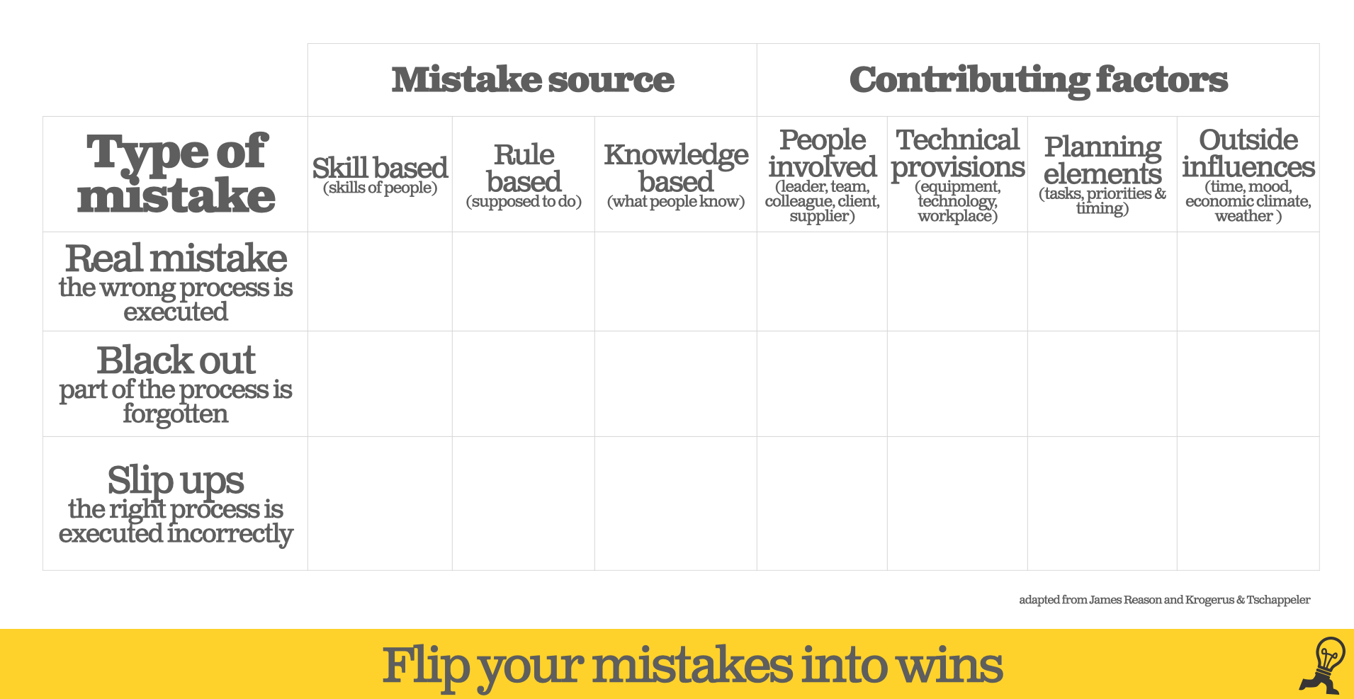 Unless we have professional saboteurs working for us, our teams nor we intentionally set out to make mistakes. Mistake making usually falls into one of the following three categories;