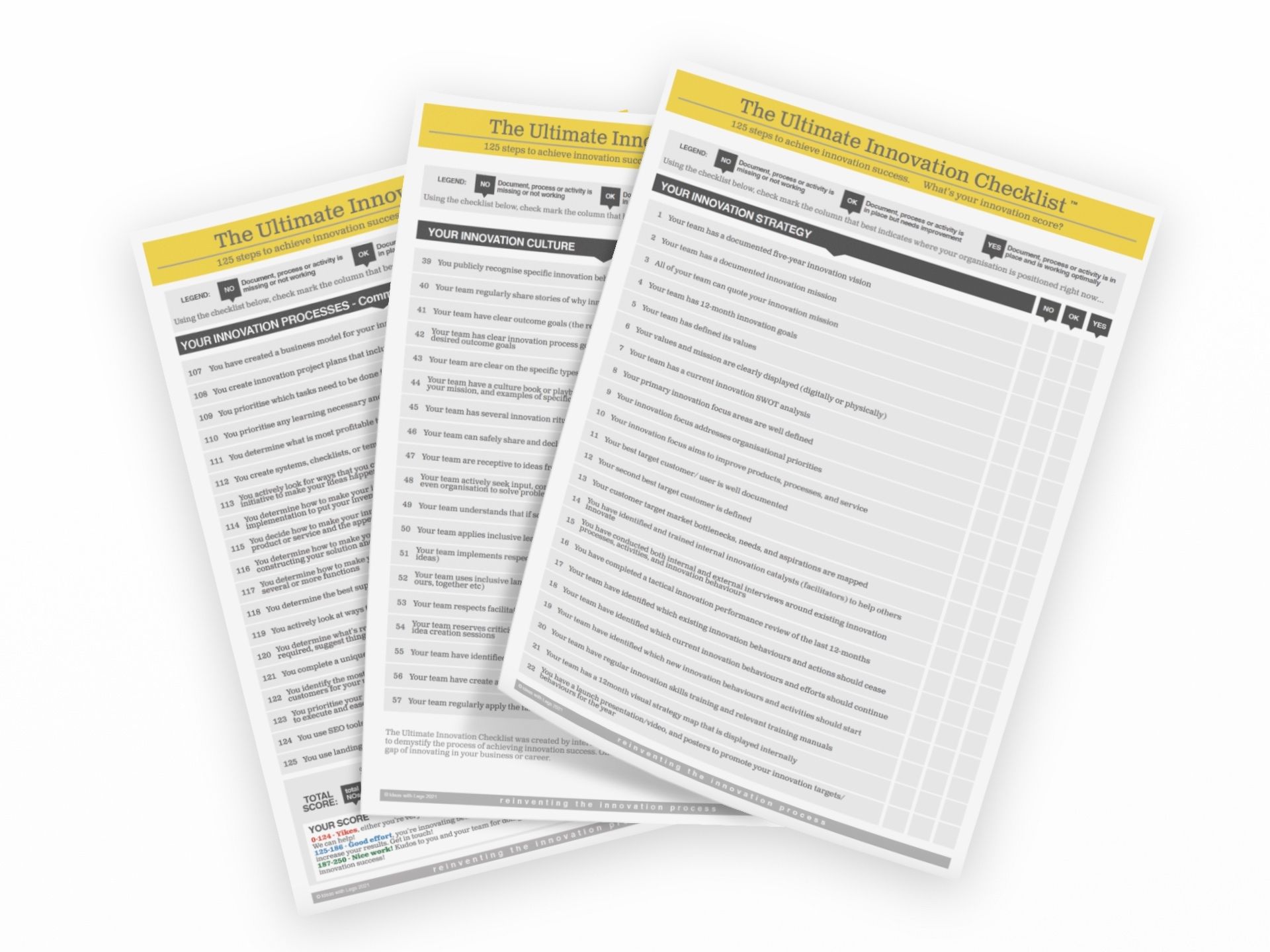 Start innovating in your organisations rapidly, and at minimal risk with the help of our Free Essential Innovation Checklist developed by our founder Nils Vesk.