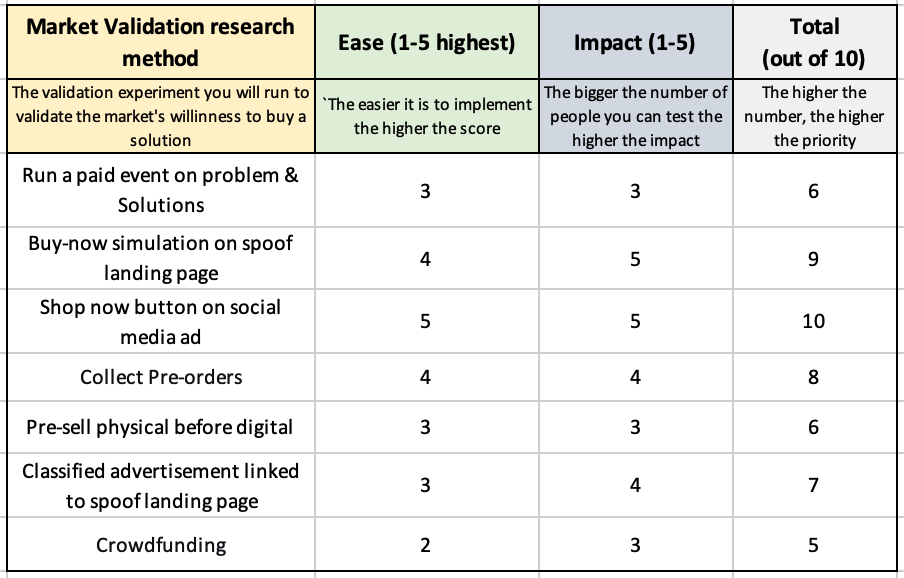 Iâve worked with one company that found the easiest way to run social media ads with the shop now button. But that doesnât necessarily mean it will work best for YOU. To see what works best for you, youâre going to brainstorm and prioritise which market validation technique to use using this market validation matrix.